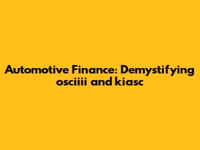 Automotive Finance: Demystifying Osciiii And Kiasc