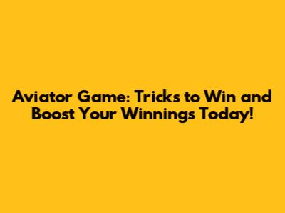 Aviator Game: Tricks To Win And Boost Your Winnings Today!