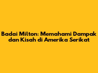Badai Milton adalah salah satu fenomena alam yang paling dahsyat dan kerap kali meninggalkan dampak signifikan di Amerika Serikat. Guys, badai ini bukan cuma soal hujan deras dan angin kencang, tapi juga tentang bagaimana masyarakat, infrastruktur, dan bahkan perekonomian harus berjuang menghadapi kekuatan alam yang luar biasa. Dalam artikel ini, kita akan menyelami lebih dalam tentang Badai Milton, mulai dari penyebabnya, bagaimana dampaknya terasa, hingga kisah-kisah inspiratif dari mereka yang terkena dampaknya. Jadi, siap-siap untuk menggali informasi penting dan memahami lebih jauh tentang badai yang satu ini!