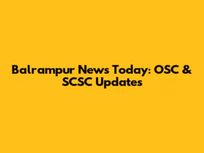 Balrampur News Today: OSC & SCSC Updates