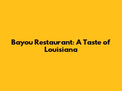 Bayou Restaurant: A Taste Of Louisiana