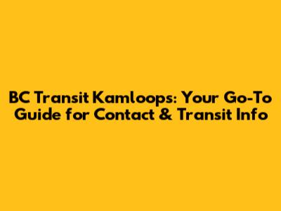 BC Transit Kamloops: Contact Info & Transit Guide