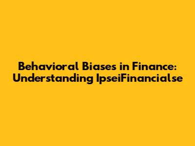 Behavioral Biases In Finance: Understanding IpseiFinancialse