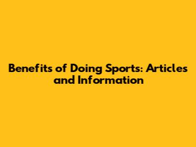 Benefits Of Doing Sports: Articles And Information