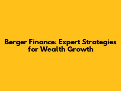 Berger Finance: Expert Strategies For Wealth Growth
