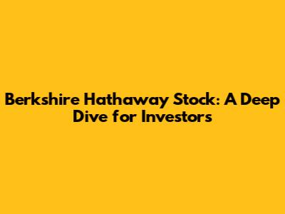 Berkshire Hathaway Stock: A Deep Dive For Investors