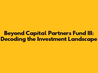 Beyond Capital Partners Fund III: Decoding The Investment Landscape