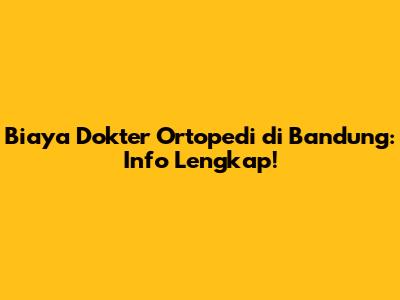 Biaya Dokter Ortopedi Di Bandung: Info Lengkap!