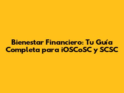 Bienestar Financiero: Tu Guía Completa Para IOSCoSC Y SCSC
