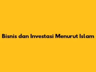 Bisnis Dan Investasi Menurut Islam