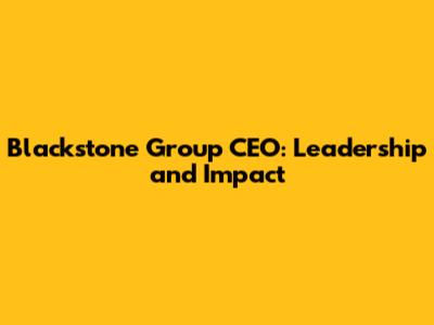 Blackstone Group CEO: Leadership And Impact