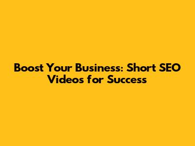 Boost Your Business: Short SEO Videos For Success