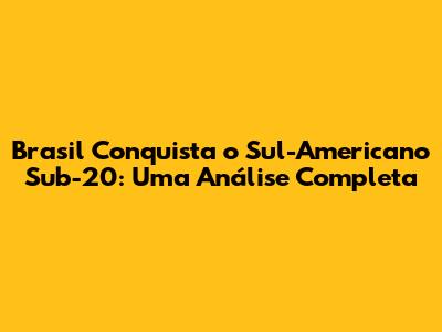 Brasil Conquista O Sul-Americano Sub-20: Uma Análise Completa