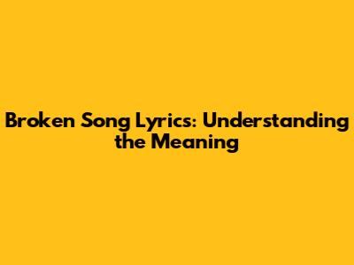Broken Song Lyrics: Understanding The Meaning