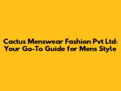 Cactus Menswear Fashion Pvt Ltd is more than just a clothing brand; it's a lifestyle. With their commitment to quality, style, versatility, and customer service, they have established themselves as a leader in the menswear market. Whether you're a fashion-conscious man looking to stay ahead of the curve or simply someone who appreciates well-made clothing, Cactus Menswear is definitely worth checking out. So go ahead, revamp your wardrobe and elevate your style with Cactus Menswear!