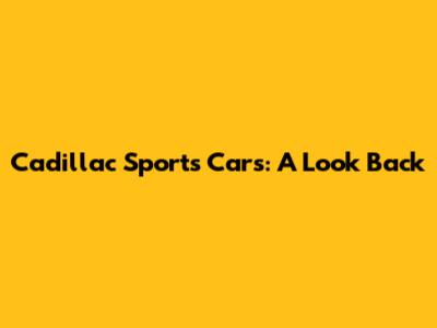 Cadillac Sports Cars: A Look Back