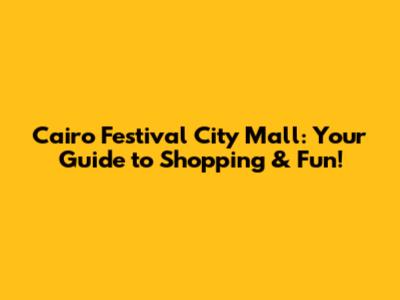 Cairo Festival City Mall: Your Guide To Shopping & Fun!
