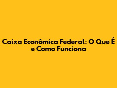 Caixa Econômica Federal: O Que É E Como Funciona