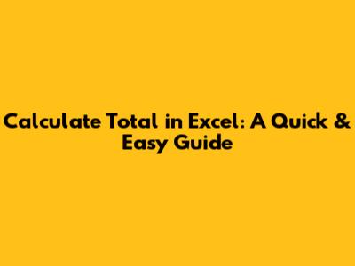 Calculate Total In Excel: A Quick & Easy Guide