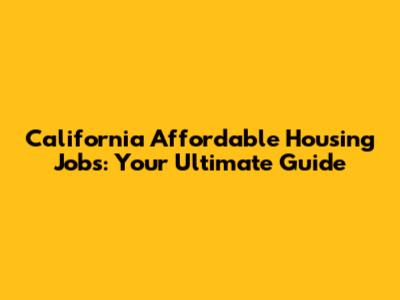 California Affordable Housing Jobs: Your Guide