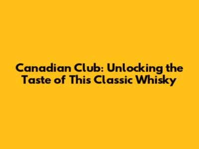 Canadian Club: Unlocking The Taste Of This Classic Whisky