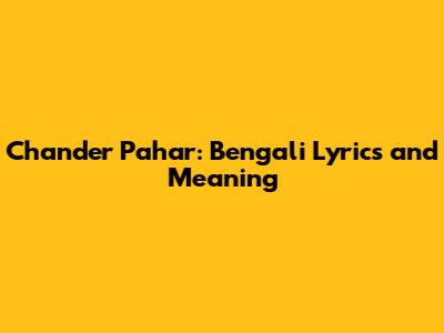 Chander Pahar: Bengali Lyrics And Meaning