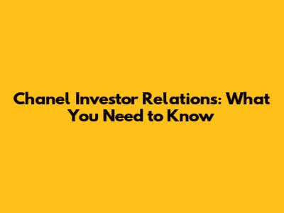 Chanel Investor Relations: What You Need To Know