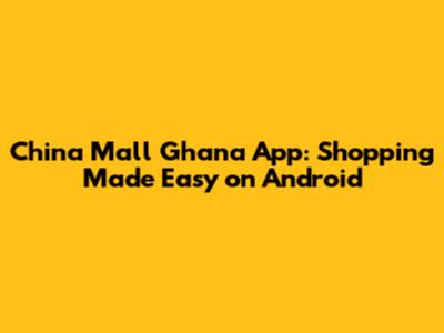 China Mall Ghana App: Shopping Made Easy On Android