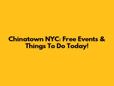 Chinatown NYC: Free Events & Things To Do Today!