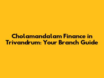 Cholamandalam Finance In Trivandrum: Your Branch Guide