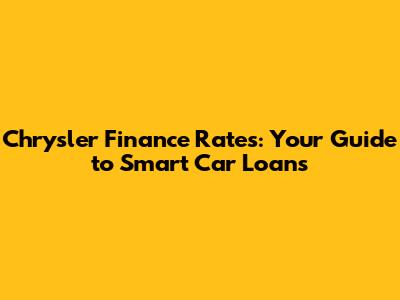 Chrysler Finance Rates: Your Guide To Smart Car Loans