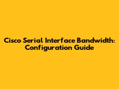 Cisco Serial Interface Bandwidth: Configuration Guide