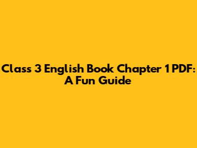 Class 3 English Book Chapter 1 PDF: A Fun Guide