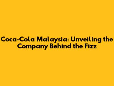 Coca-Cola Malaysia: Unveiling The Company Behind The Fizz