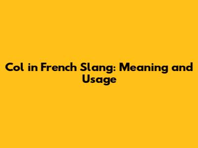 Col In French Slang: Meaning And Usage