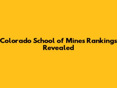 Colorado School Of Mines Rankings Revealed