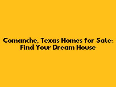 Comanche, Texas Homes For Sale: Find Your Dream House