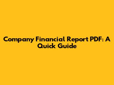 Company Financial Report PDF: A Quick Guide