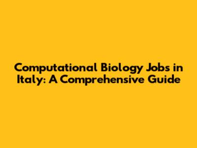 Computational Biology Jobs In Italy: Your Career Guide