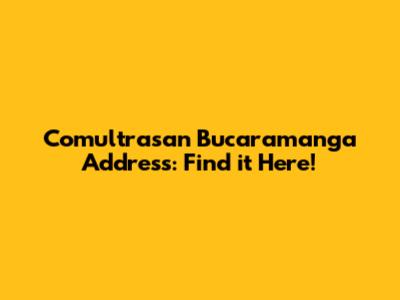 Comultrasan Bucaramanga Address: Find It Here!