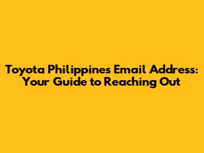 Disclaimer: The email addresses and contact information provided in this article are for informational purposes only and may be subject to change. Please refer to the official Toyota Philippines website for the most up-to-date information.