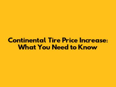 Continental Tire Price Increase: What You Need To Know