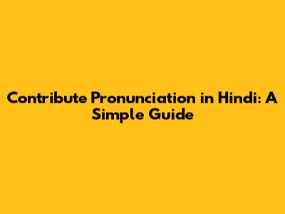 Contribute Pronunciation In Hindi: A Simple Guide