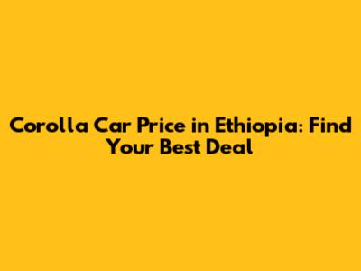 Corolla Car Price In Ethiopia: Find Your Best Deal