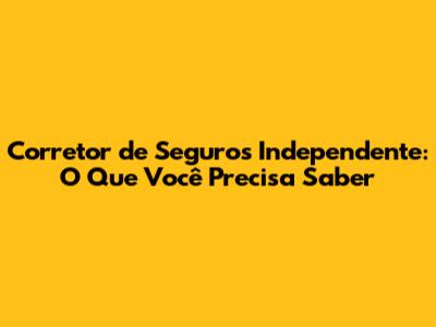 O Que é um Corretor de Seguros Independente?