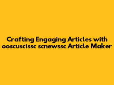 Crafting Engaging Articles With Ooscuscissc Scnewssc Article Maker