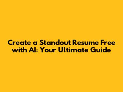Create A Standout Resume Free With AI