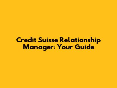 Credit Suisse Relationship Manager: Your Guide