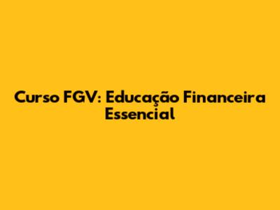 Curso FGV: Educação Financeira Essencial