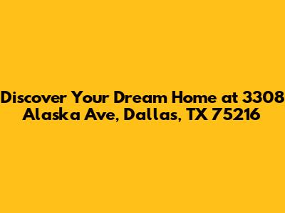 Hey there, future homeowners! Are you on the hunt for a fantastic place to call your own in Dallas, Texas? Well, get ready to be wowed because we've got a gem for you at 3308 Alaska Ave, Dallas, TX 75216. This isn't just any house; it's an opportunity to snag a piece of the vibrant Dallas lifestyle. Imagine waking up every morning knowing you're in a home that perfectly suits your needs and desires. From its prime location to its charming features, this property is just waiting for someone to make it their own. We're talking about a place that combines comfort, convenience, and that special Dallas spirit. Whether you're a first-time buyer looking to plant your roots or a seasoned homeowner seeking an upgrade, 3308 Alaska Ave offers a compelling package. Let's dive deep into what makes this Dallas address so special. We'll explore the neighborhood, the house itself, and why this could very well be the perfect Dallas home you've been searching for. Get ready to fall in love with this incredible Dallas property!